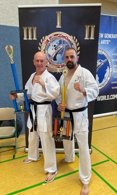 Sensationelles Ergebnis für Trainer Thomas Faust vom Karate Team Faust bei der diesjährigen Weltmeisterschaft der WKU (World Karate and Kickboxing Union). Thomas belegte den 1. Platz in der Altersklasse plus 45 Jahre und den 2. Platz in der AK plus 35 Jahre.