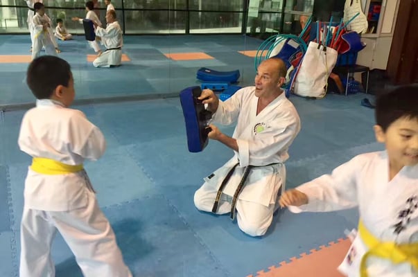 Thomas gibt Karate Training in Shanghai, China