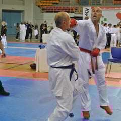 Die Kämpfe im Karate starteten am Samstag und Thomas konnte sich in der Vorrunde gegen seine Gegner behaupten und erreichte in der Altersklassen plus 45 Jahre bis 80kg das Finale. Für Sonntag war der Finalkampf angesetzt. Thomas musste gegen den ebenso erfahrenen und mehrfachen Weltmeister Roberto Zanini antreten. Den sehr spannen und harten Kampf konnte Thomas für sich entscheiden und gewann mit 4:2 Punkten.